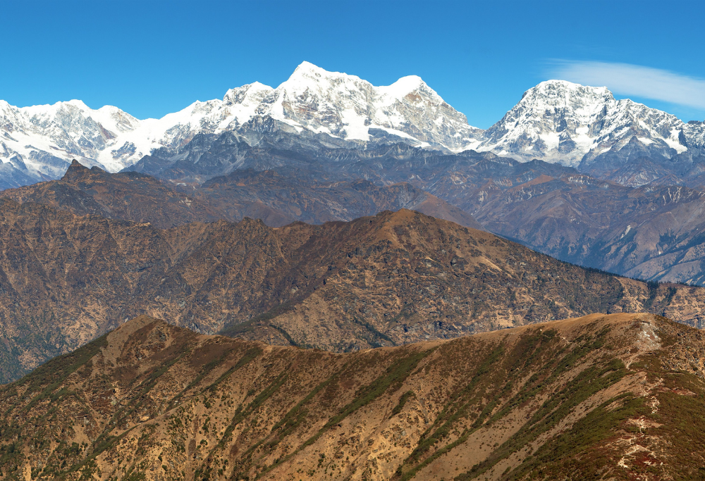 We embark on our journey to Taksindu this morning. At the town's lower end, cross the river, then walk through the jungle to Salung. If the weather is clear, we can catch sight of Mount Everest (8848 m/29,028 ft), Chamlang (7319 m/24,012 ft), and Makalu (8481 m/27,824 ft) from there. We'll also enjoy beautiful views down to Phaplu and across the valley to Chiwong Monastery.