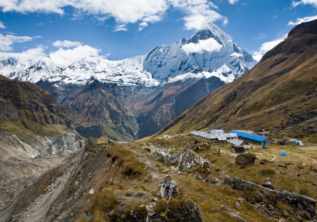 The helicopter touches down at Mardi Himal High Camp for a brief 20-minute stop. Take in the serene beauty of the Annapurna Sanctuary and behold the majestic Himalayan range, featuring prominent peaks like Annapurna, during this pause.